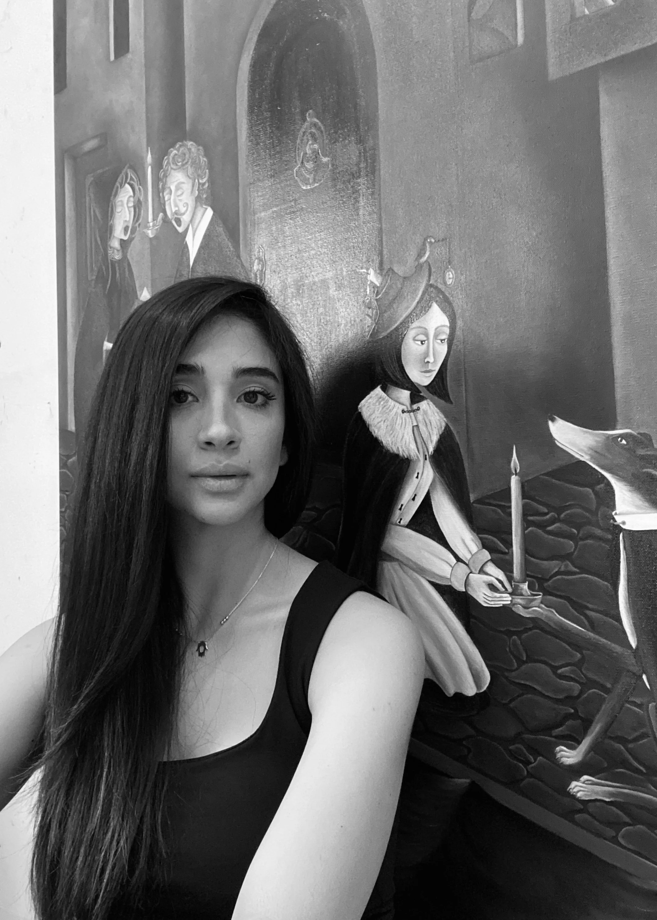 Rusul's work aims to be a mirror of emotions, using imagined characters—humans, creatures, animals, insects, and other objects—that often come to us in dreams. Her unique form of symbolism creates a magical environment that challenges viewers to use their imagination to interpret each painting for themselves. She carefully crafts compositions to complete each scene, making it easier for viewers to engage with her work.